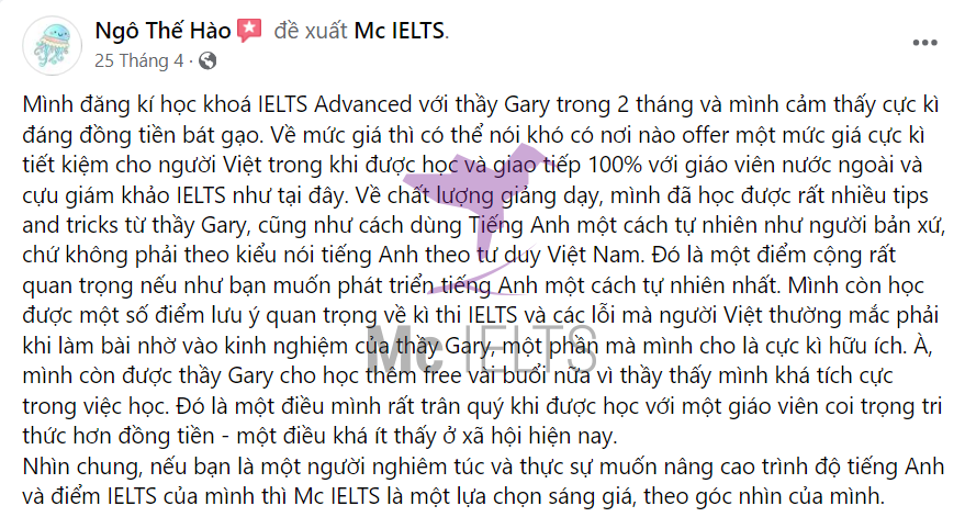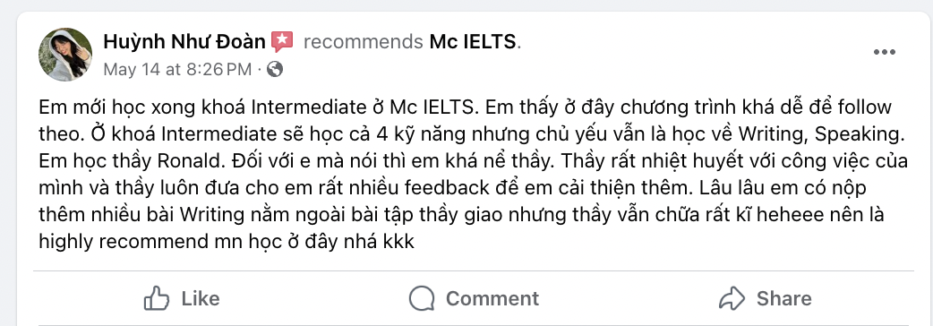 Học viên sau khi tham gia các khóa học tại Mc IELTS nghĩ gì?