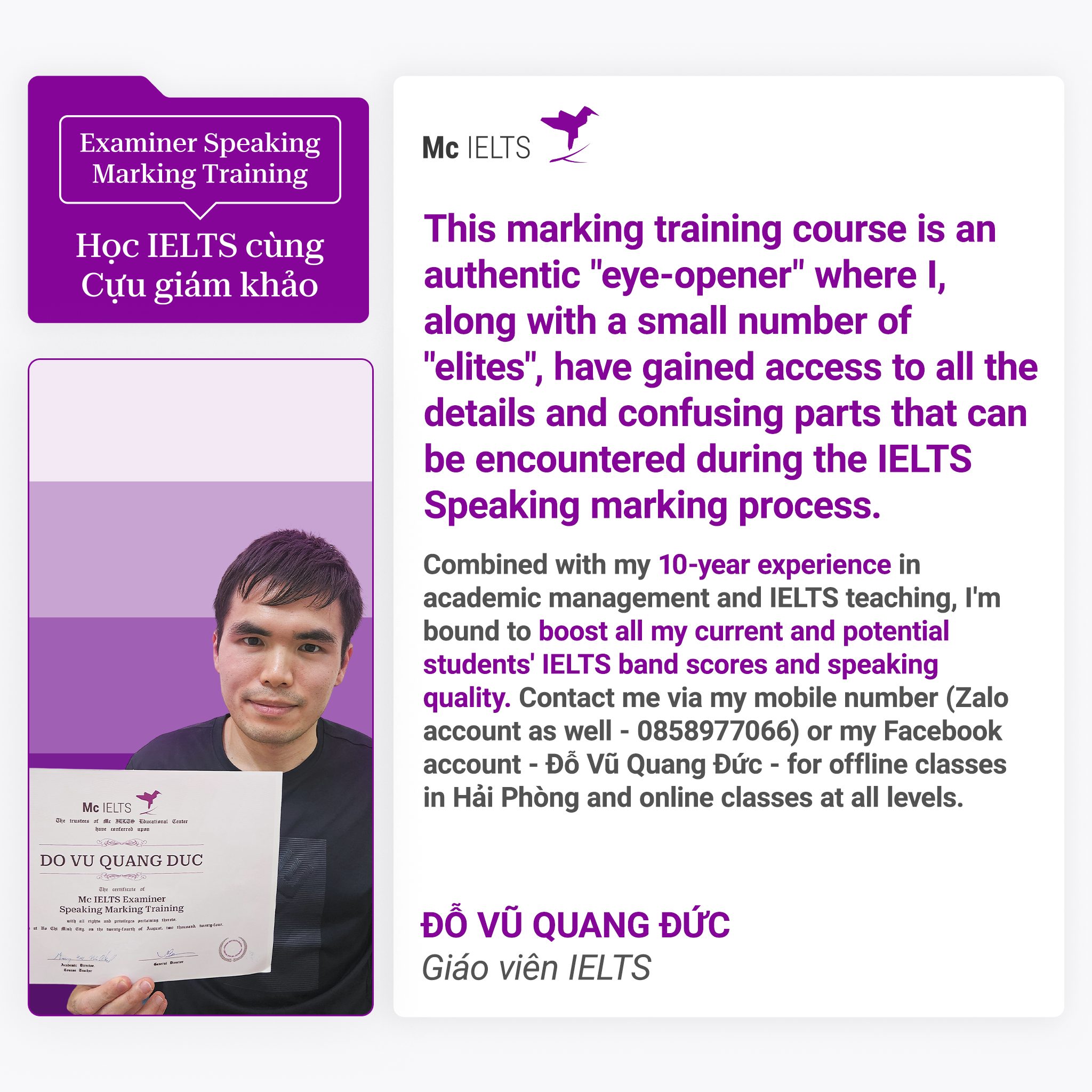 Đỗ Vũ Quang Đức – Học viên khóa Writing Marking Training