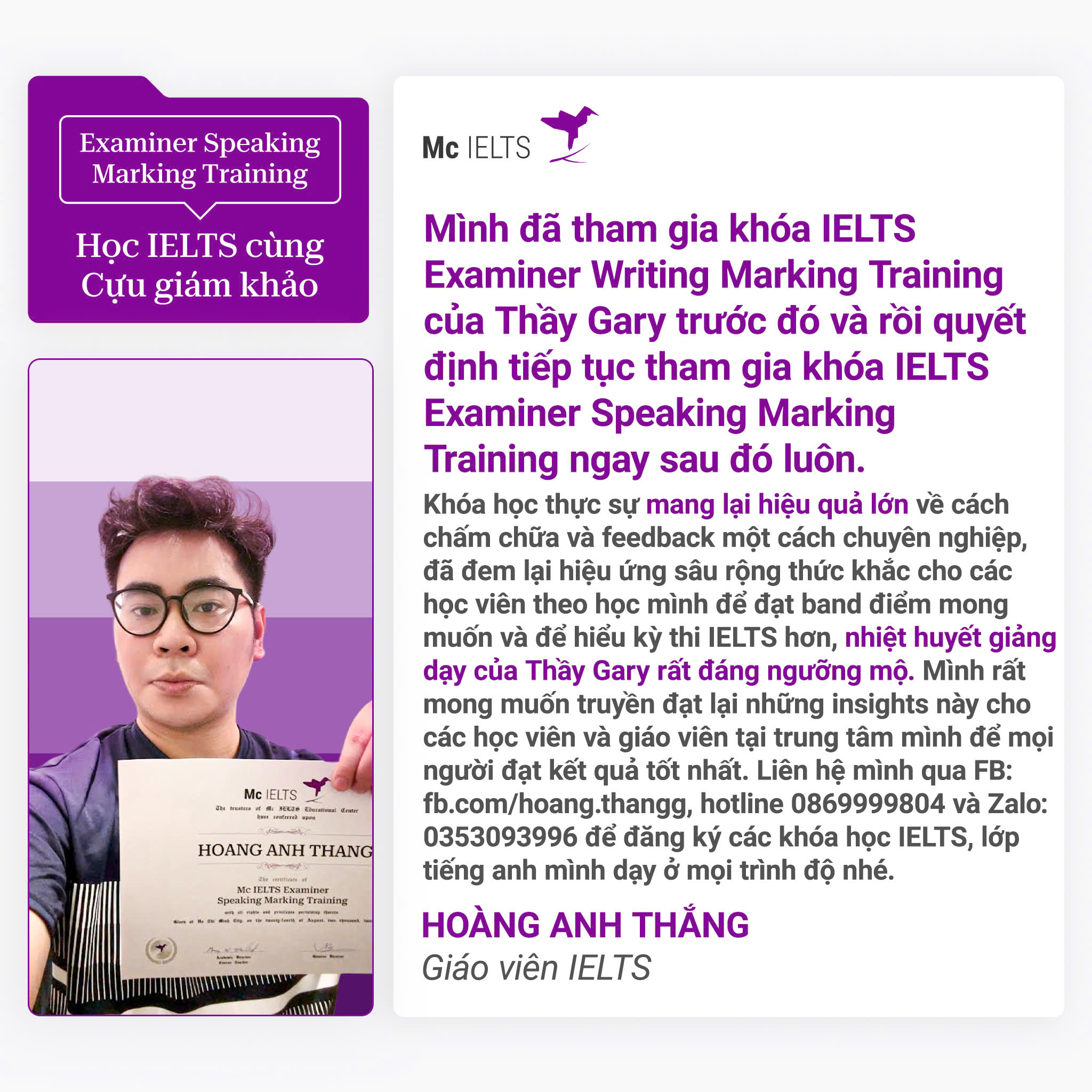 Hoàng Anh Thắng – Học viên khóa Writing Marking Training