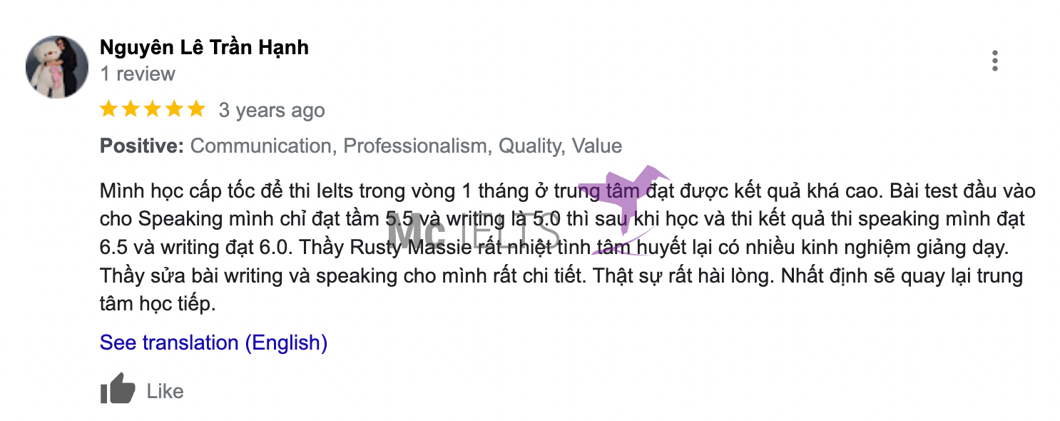 Xem thêm bảng vàng thành tích các học viên tại Mc IELTS
