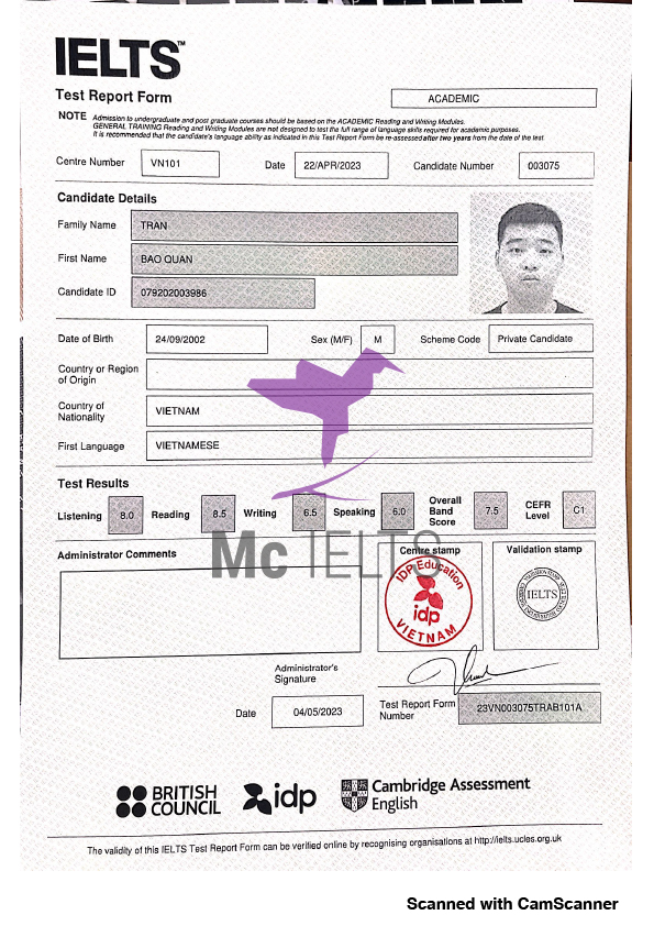 Trần Bảo Quân – IELTS 7.5