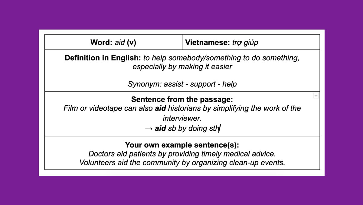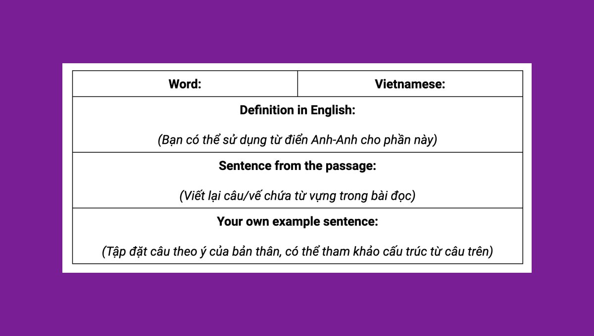 Liệt kê từ vựng kèm theo nghĩa tiếng Việt cho từng bài đọc có thể làm bạn cảm thấy mệt mỏi do phải “tiêu hóa” một lượng lớn thông tin, lên đến 20-30 từ cho mỗi bài. Phương pháp này không chỉ tốn thời gian mà còn không hiệu quả, vì não bộ thường quên các từ mới nếu chúng không được sử dụng thực tế trong quá trình giao tiếp của bạn.