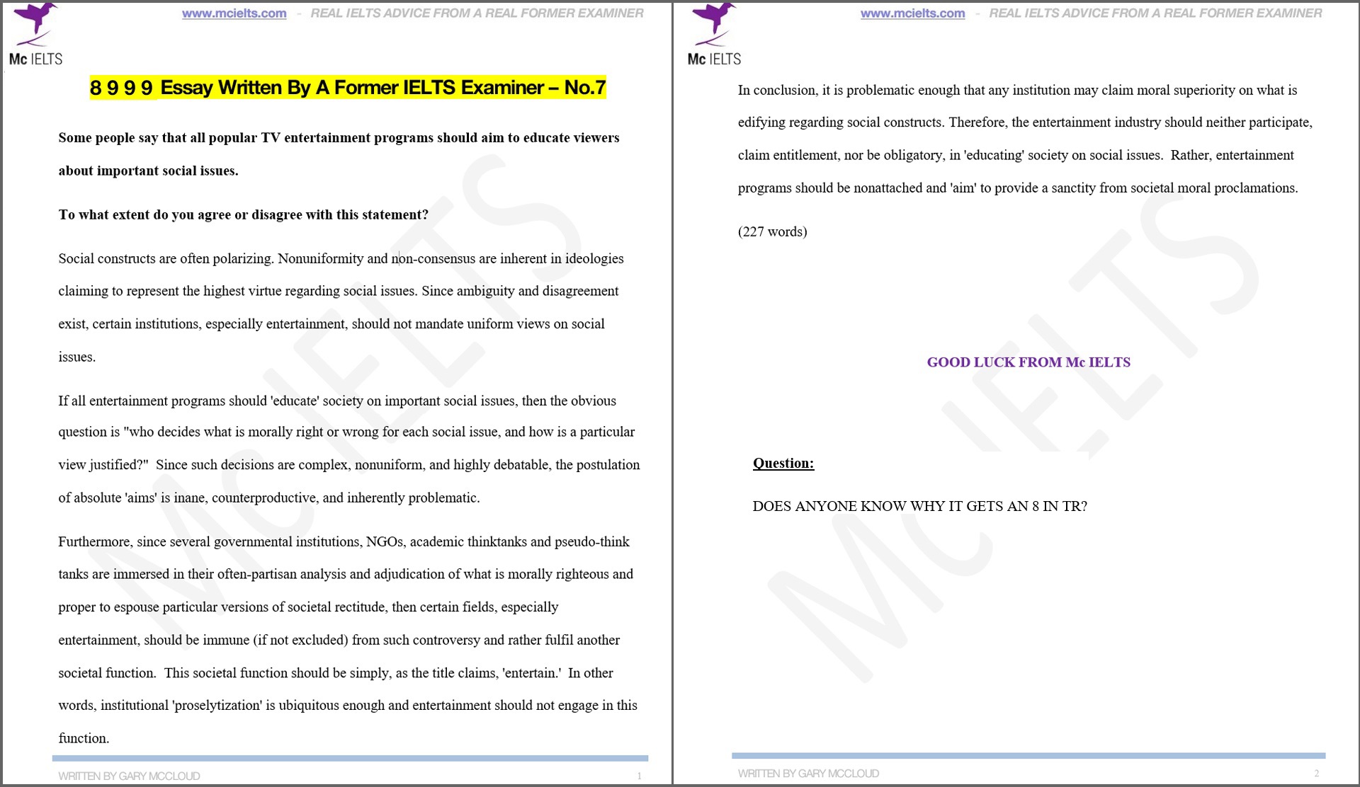 Được viết bởi chính thầy Gary McCloud (Former IELTS Examiner), những bài viết IELTS dưới đây đều đạt level 9.0.